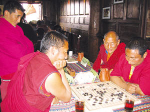無論如何,藏棋是流傳下來了。過去,藏棋一般是在藏族上層貴族間流傳,之后也傳入了周邊尼泊爾、錫金、不丹等國。據(jù)說1958年錫金王子去日本訪問時(shí),曾與日本圍棋高手對(duì)弈一種規(guī)則奇特的圍棋,棋盤也是自帶的,引起了日本棋壇的驚異,而這位錫金王子說是學(xué)自西藏僧人。這種奇特的圍棋應(yīng)該就是藏棋。