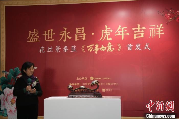 程淑美與花絲景泰藍(lán)新作《萬事如意》在首發(fā)現(xiàn)場(chǎng) 李妮 攝