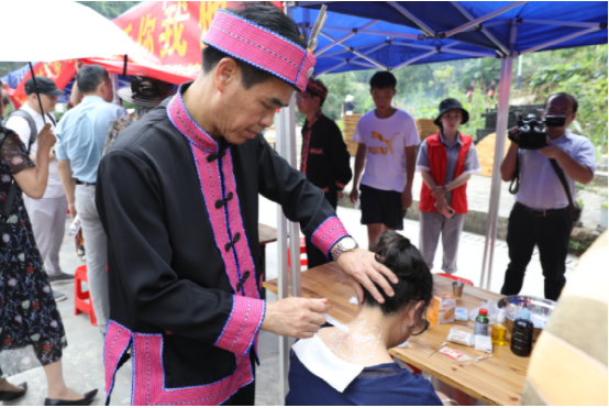 本次活動以2020年“文化和自然遺產日”的“非遺傳承,健康生活”為主題,重點圍繞傳統(tǒng)醫(yī)藥項目保護,普及“非遺”知識和健康生活理念,營造全社會共同參與、關注和保護傳承優(yōu)秀傳統(tǒng)文化濃厚氛圍而開展。邀請十位瑤醫(yī)藥傳承人帶領40多位瑤醫(yī)弟子各顯神通,在現(xiàn)場開展非遺項目義診活動,為游客免費問疹,展示泡藥療法、針灸療法、燈草療法、坐浴療法、拉伽通灸療法等10種技法。瑤寨里每一戶人家拿出拿手絕活在自家進行現(xiàn)場展示,黃泥鼓制作、樹葉豆腐制作、瑤族織繡技藝、釀酒技藝、舂糍粑、原創(chuàng)歌曲展示等,豐富多彩的各種技藝,讓游客流連忘返。