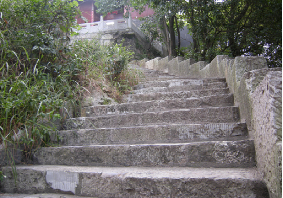 冠山,位于貴州龍里冠山盆地(縣城)東隅,巖山形似金鐘撲地,古木參天,蔥郁蒼翠。明永樂七年(1409)始建的道教活動場所掩蔽其中,可謂“山不在高有仙則名”。在歷史的長河中,雖然道教一去不復(fù)返,但其紫虛觀主體建筑保存尚好,現(xiàn)列為省級文物保護單位,由主體建筑紫虛閣、左右?guī)?、前殿、山門、文昌祠組成二進院式古建筑群。主體建筑為木構(gòu)穿斗式三重檐六角攢尖筒瓦頂,1989年遷入的文昌祠,為木構(gòu)抬梁式歇山青瓦頂,帶吻正脊,戧脊翹角卷草,石質(zhì)柱礎(chǔ)浮雕仙草、竹、梅、鹿等圖案。西南兩面有1936年題刻的“還我河山”、“巨靈一孹”等七方摩崖石刻。建筑物的形制、布局給人一種古樸、滄桑之感。登閣騁目,遠山峻嶺和鱗次櫛比的樓房盡收眼底,讓人流連忘返。