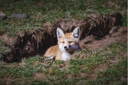 不知不覺中,太陽已經(jīng)下山了。面對三只小家伙從警覺、驚喜、歡快到煩躁、無奈、焦慮的神態(tài)變化,我對記錄了小赤狐一天的喜怒哀樂而高興,又為小赤狐整整一天的忍饑挨餓而擔(dān)憂,趕緊收拾攝影器材,撤離它們賴以生存的家園,還它們一個不被打擾的寧靜……