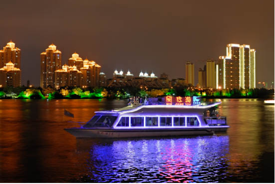 閩江夜游路線:臺江旅游碼頭→金外灘→閩江大橋→中洲島→南北閩江公園→洪山橋→臺江旅游碼頭。