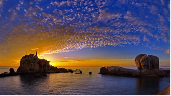 屬長樂市江田鎮(zhèn),與文武沙鎮(zhèn)交界。黃沙碓因巖石呈黃色、金色沙灘而得名。車行至長樂下沙漫步沙灘經(jīng)文武砂灘和有長達千米的十八孔水閘堤壩雄偉壯觀的“云母礁”和高達9米的媽祖神像的廟宇,壩內(nèi)有秀麗的淡水湖,無垠的沃野,金色的沙灘,千米的海提交融成絕佳的風(fēng)景。