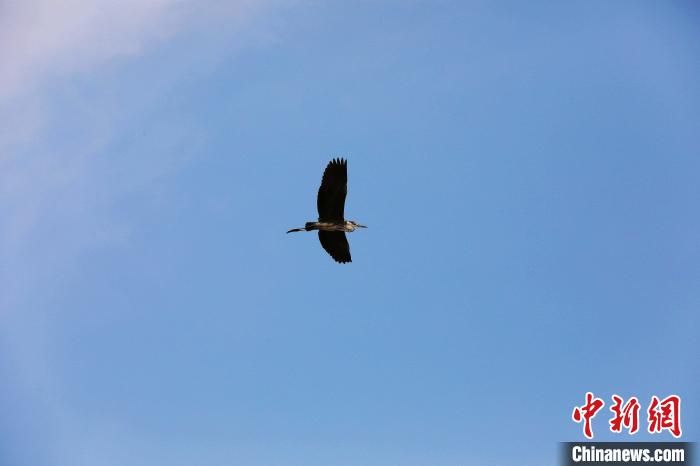 鳥兒在南宮湖濕地公園飛翔?!√锿z