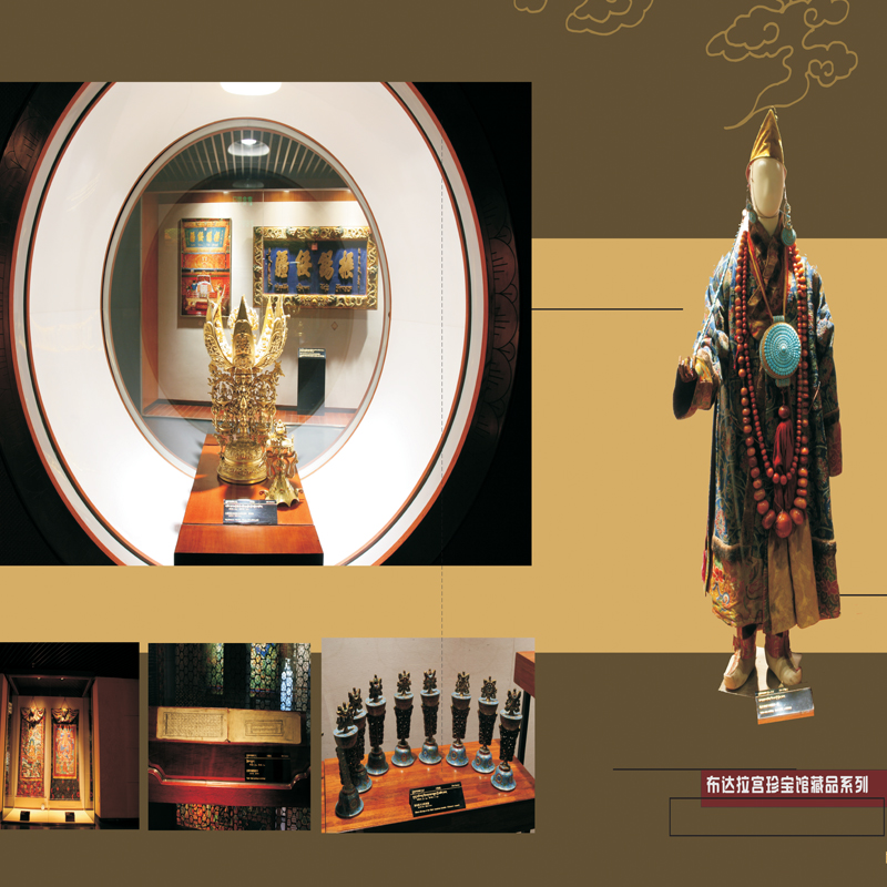 布達(dá)拉宮珍寶館展出宮藏文物200件左右,其中包括封誥、印鑒、禮品、文獻(xiàn)典籍、貝葉經(jīng)、佛像、唐卡、法器等。布達(dá)拉宮珍寶館有14世紀(jì)制造的“八瓣蓮花喜金剛壇城像”。2009年8月11日正式對(duì)外開(kāi)放。