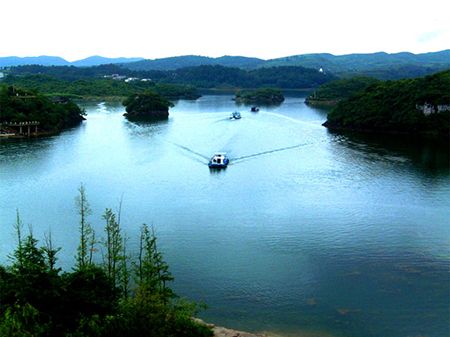 百花湖在朱昌鎮(zhèn)旁,湖中有100多個小島,以湖汊多、島嶼多見勝,遠(yuǎn)眺之下,很有幾分江南水鄉(xiāng)的韻味。游覽百花湖的最佳時間是春天,那時百花湖上就會百花盛開,姹紫嫣紅,百花湖也是因此而得名的。景區(qū)以湖光山色和巖溶地貌的自然景觀為主體,兼具秀、幽、奇、巧的特色。