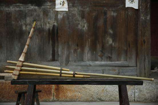共鳴管:是套在笙管上端的一截竹管,可使音量明顯增大,多使用毛竹制作,依音高不同而異,以c、c1、c2三音為例,管長分別為60厘米、30厘米、15厘米,余者類推。以上所述為黔東南地區(qū)的苗族蘆笙;在黔中、黔南和黔西北,則流行著另一種形制的蘆笙,笙管用白竹或筍殼竹制作,下端管口不堵塞。上端用兩道竹篾箍緊,笙斗制作時中間不剖開,而是從粗端挖起,直通細端吹口部位,然后用圓木塞把粗端開口堵嚴(yán),再用數(shù)道化篙皮箍住。