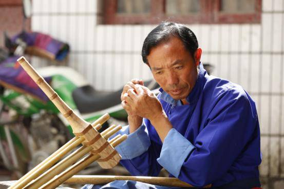 最難的是敲打簧片、割簧片、校單音、校和音這四個程序,最細致,最需要掌握的就是割簧片。把竹管的聲音和簧片的聲音全部調(diào)成一致,然后還要校正聲音。把單音校好以后還有雙管的,如果不把聲音校準(zhǔn),雙管就會和不起來,吹起來也不好聽,就不能用。