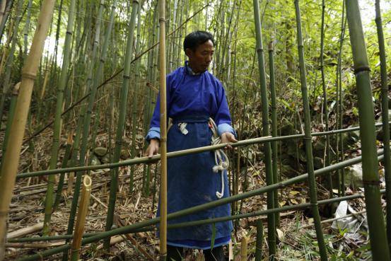 發(fā)音跟笙管的長短有關(guān)系,它必須要配對。如這是六拳的,這一管必須和這一管關(guān)節(jié)是一樣的,所以它們聲音都是一樣的。差一點可以,不能差太多。有時也找不出來。山上長出來的(竹子)不可能完全都是一致的。比如這一對就挺合適的。這一管和這一管是一樣的。不長不短,它的和音就比較好。