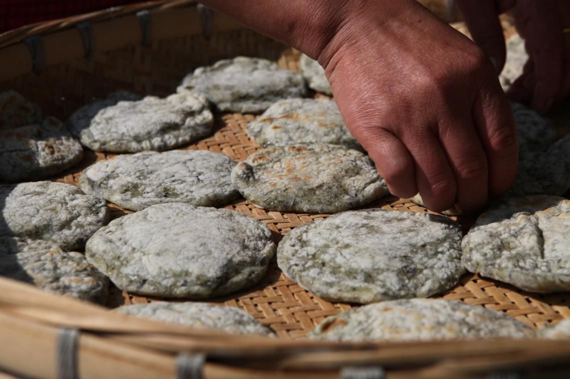 除了少部分近期使用,需要及時(shí)加工,大部分清明菜將進(jìn)入儲(chǔ)存的工序。張國(guó)秀將煮熟的清明菜置于陽光下暴曬,水分的減少抑制了酶的活性,完全曬干后能保存半年之久。為了保證一年的供應(yīng),另一部分需要放入冰柜中冷藏。