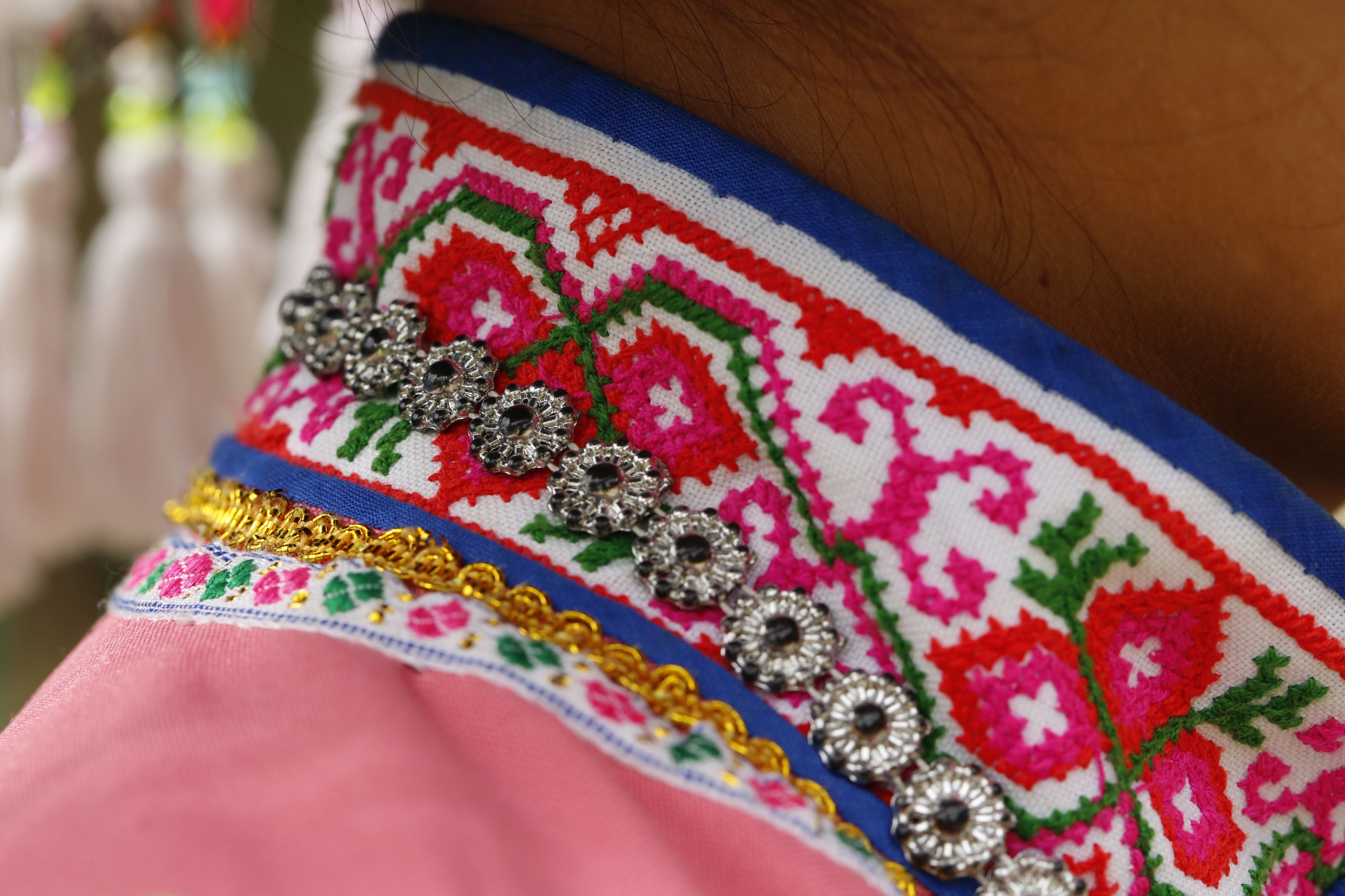 苗族女子對襟刺繡上衣-衣領側面繡花及裝飾