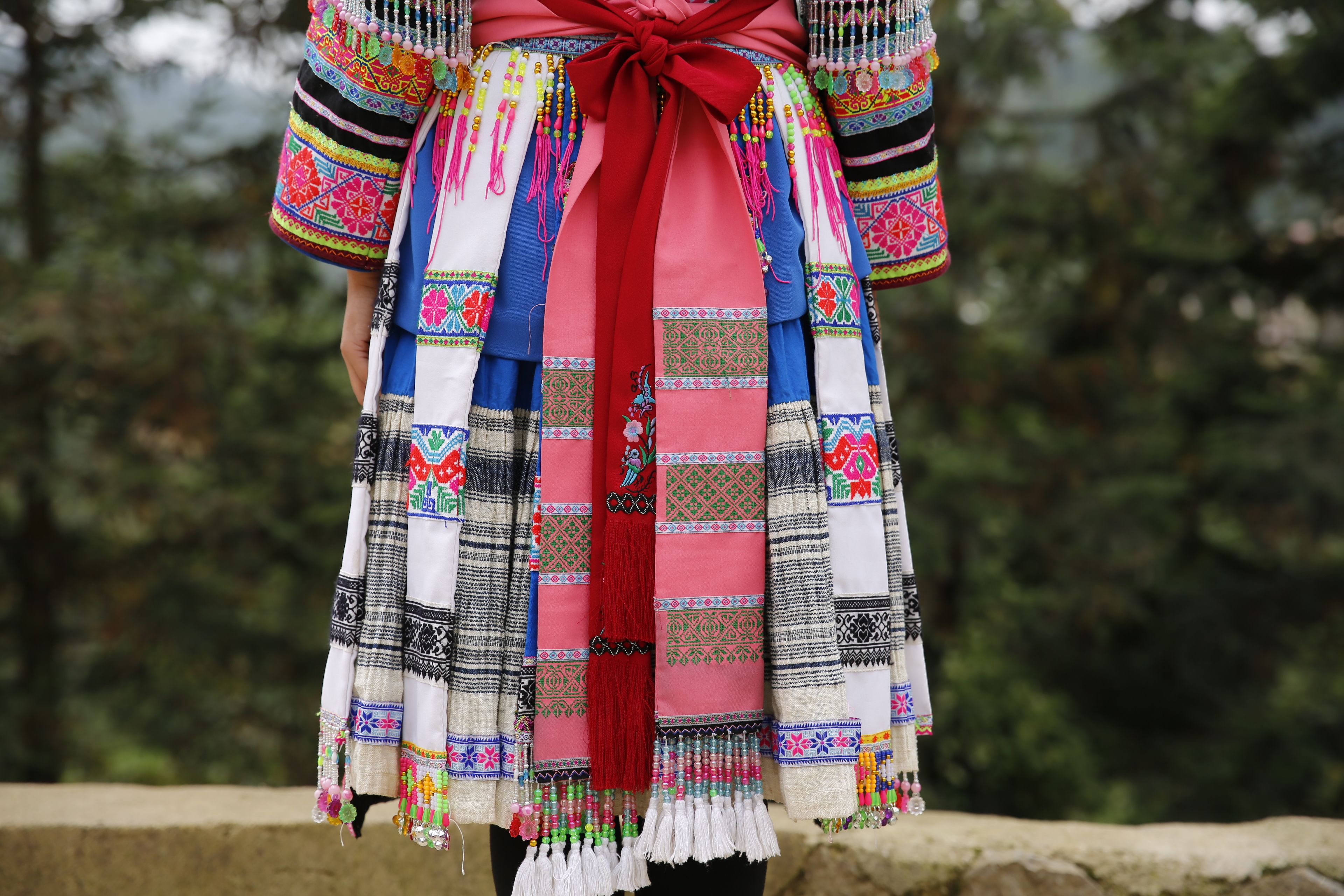 苗族女子服飾花帶百褶裙-裙擺側(cè)面繡花及印染